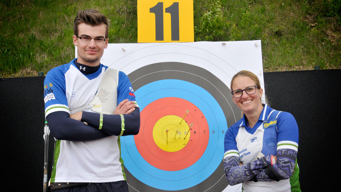 Shooting on home soil, Ana Umer and Gasper Strajhar qualified top in the recurve competitions, scoring 644 and 663, respectively, and combining for the join lead in the mixed team competition.