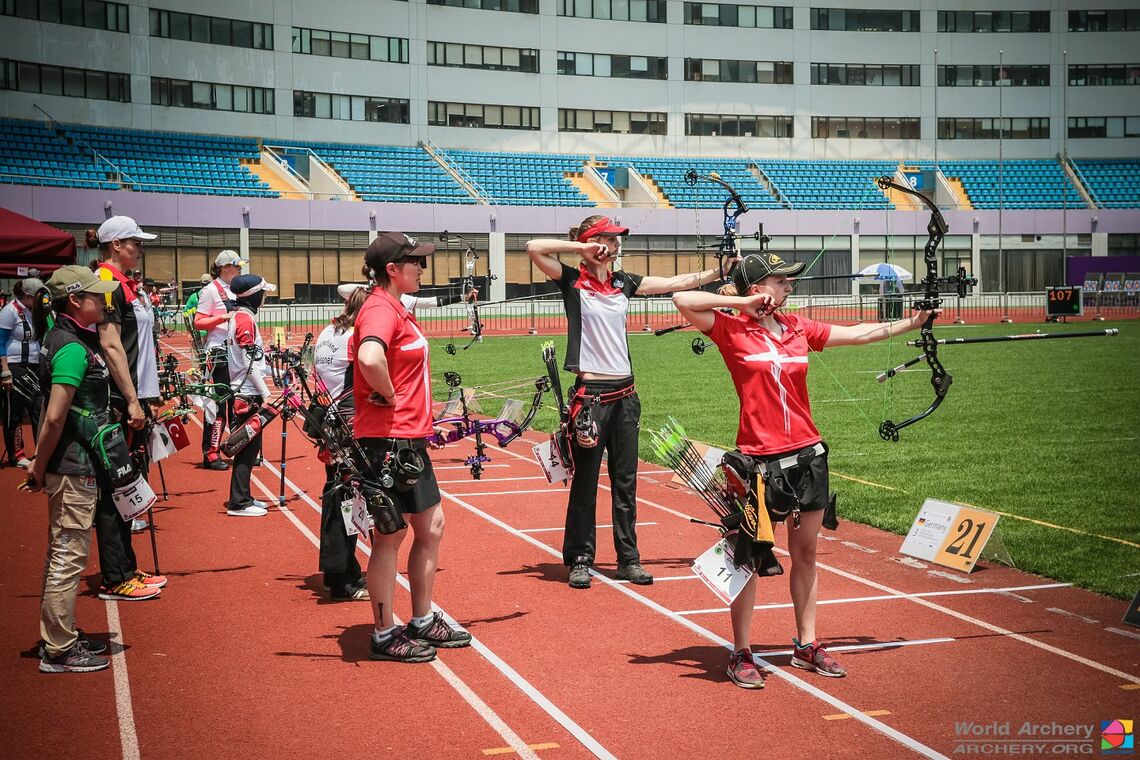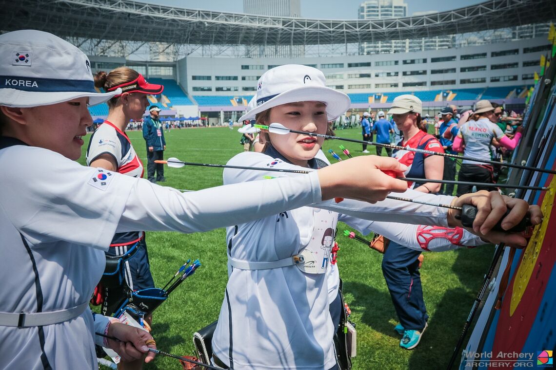 Not quite the performance we’re used to expecting from the Korean recurve women. But these juniors, who came to Shanghai for experience at international events, still won a first-round match 6-0 before falling short to Chinese Taipei.