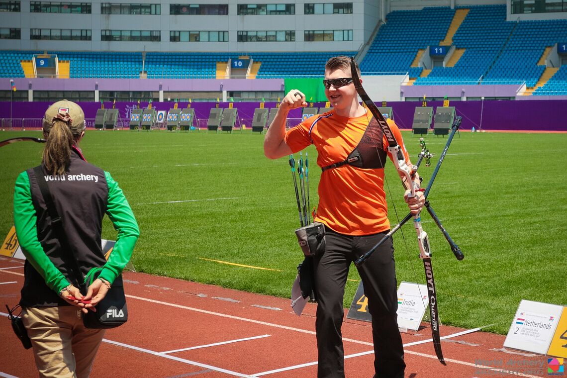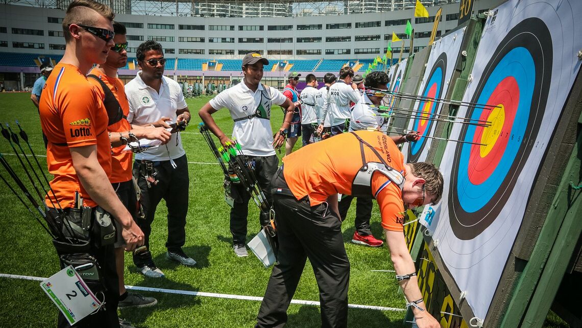 In the header: The Dutch recurve men’s team turn the boards to a 4-4 draw in the semifinals, after trailing 4-0 to India, before posting a perfect 30 points in the tiebreaker.