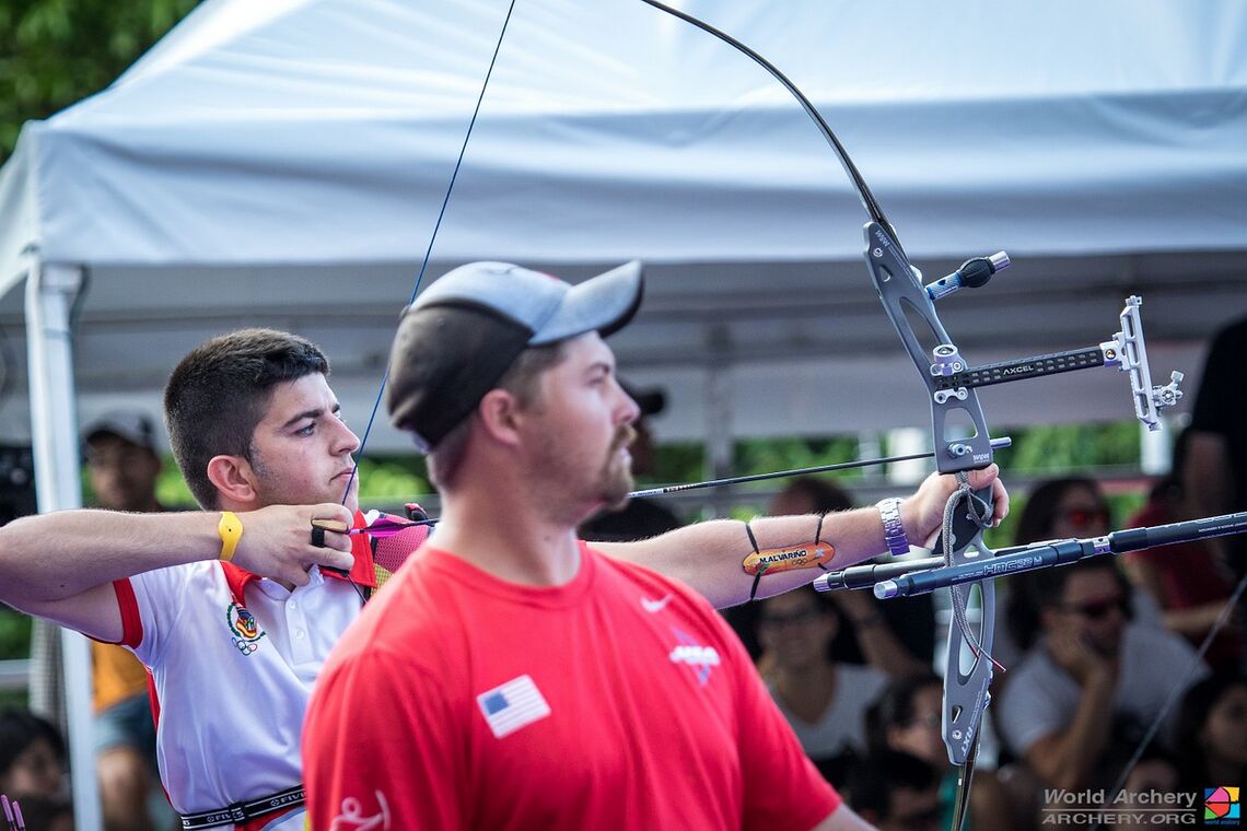 All of Alvarino’s arrows landed high, and he spent a few arrows adjusting his sight and trying to bring them back into the middle. It wasn’t until the third set, when he was 4-0 down, that it seemed to work.