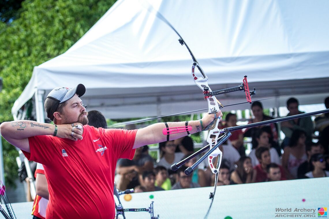 Brady Ellison took recurve men’s gold at the second stage of the 2016 Hyundai Archery World Cup in Medellin, Colombia in four sets over European Games and reigning circuit champion Miguel Alvarino Garcia.