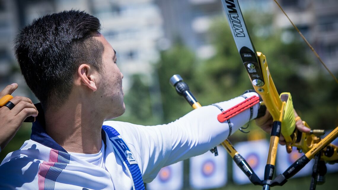 Ku Bonchan was three points clear at the top of the recurve men’s 230-athlete-long leaderboard a the third stage of the Hyundai Archery World Cup in Antalya, Turkey. He was trailed by teammates Kim Woojin by three points, on 683, and Lee Seungyun by a further two, with 681, to round out a Korean top three.