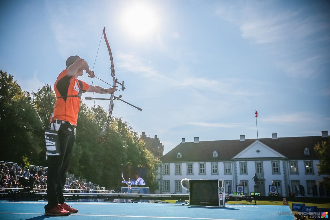 On recurve Sunday morning in Odense, Sjef van den Berg quietly, efficiently knocked out World Archery Champion and multiple world record holder Kim Woojin to make the semifinals.