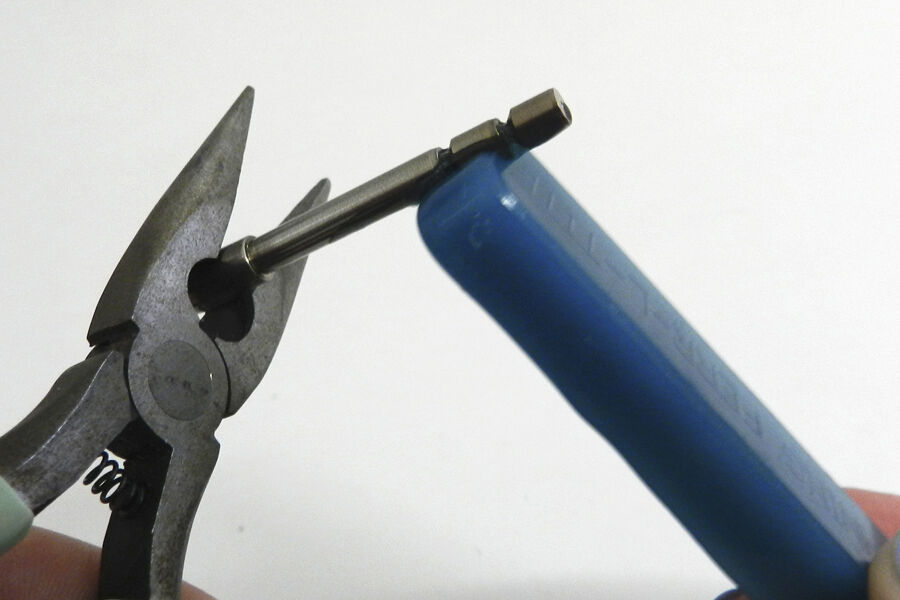 Light the blow torch and, gripping the point with the pliers, heat the insert end of the point using the hottest part of the flame. Do this for only a few seconds.