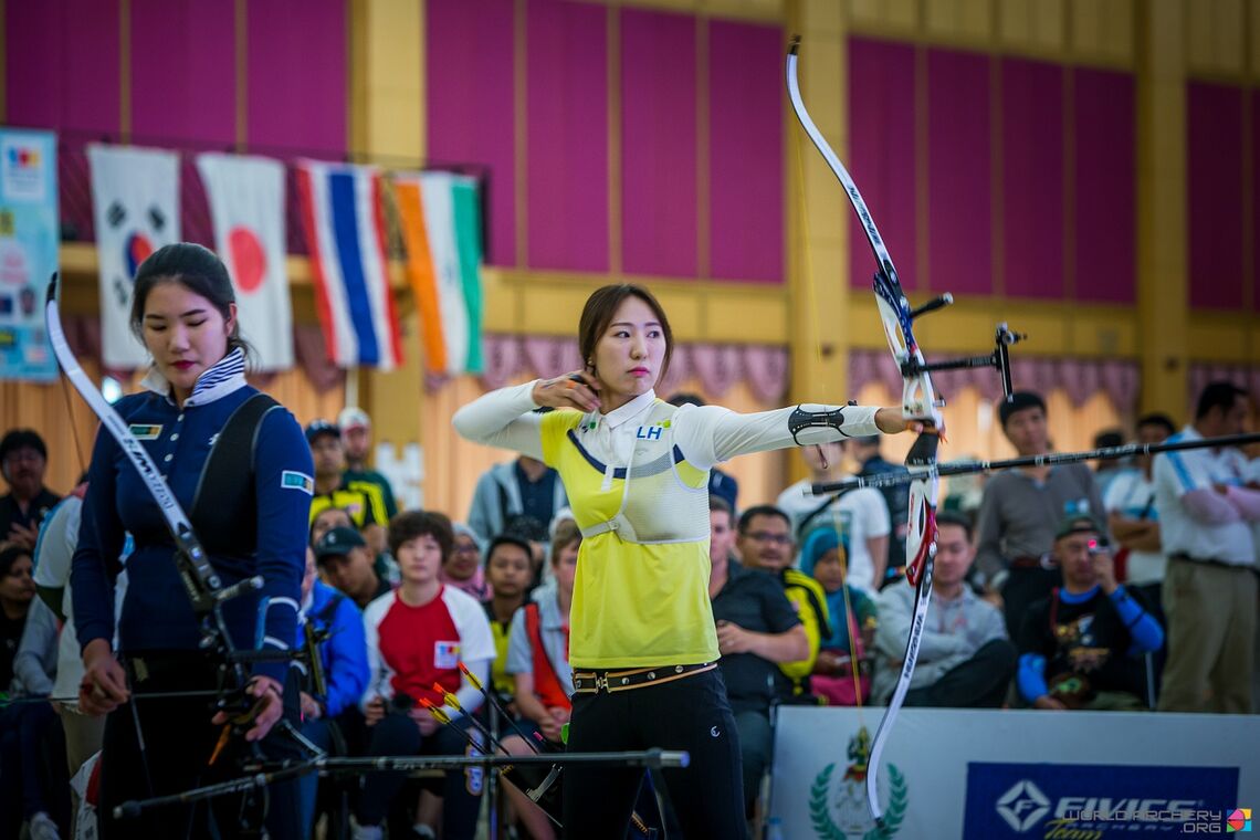 Hyundai Steel’s Gye Dong Hyun, the number one seed in the recurve men’s competition, went 4-0 down on Kim Jae Hyeong in their gold medal match, before shooting two consecutive sets of 30 to draw things level. Both shot perfect in the final three-arrow series to force the tiebreaker.