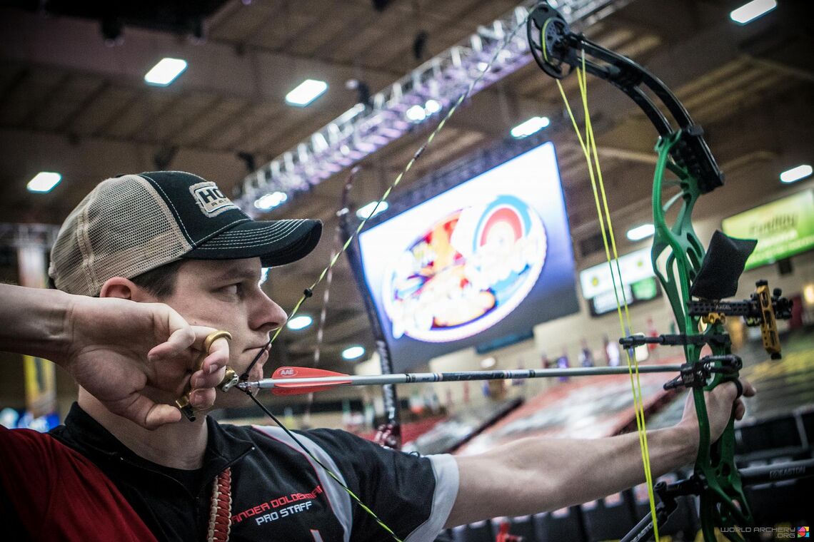 To qualify for the Indoor Archery World Cup Final on Saturday evening, archers in the four competition categories – compound men, compound women, recurve men and recurve women – had to shoot in at least one other stage of the circuit and finish in the top 16 of the rankings after stage four (the first two days of Vegas).