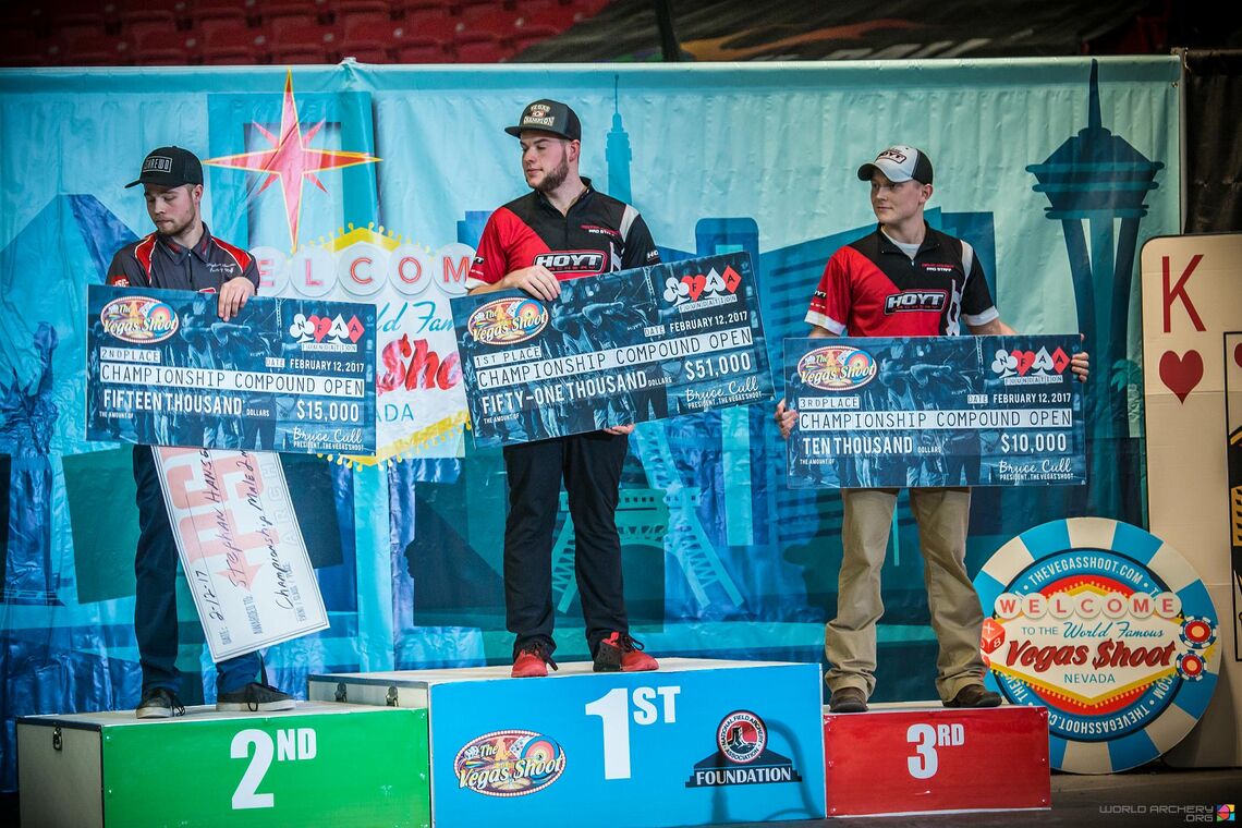 Since 2012, The Vegas Shoot has doubled in size. In 2013, 1811 archers attended; in 2014 it was 2165; 2573 in 2015 and 3050 in 2016. In 2017, 3480 people – amateurs and pros – shot at The Vegas Shoot. It is the largest single-location indoor archery tournament in the world.