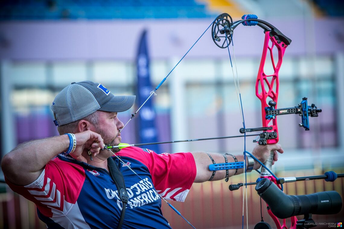 He’s facing World Archery Champion Stephan Hansen who, individually, has never medalled on the outdoor circuit.
