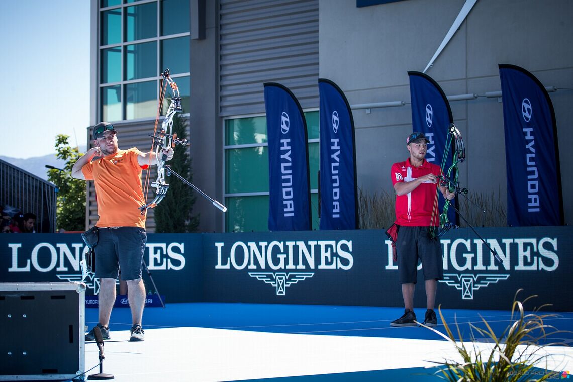 Stephan Hansen, 22, and Mike Schloesser, 23, are the top-two ranked compound men in the world. Hansen is the reigning World Champion, Schloesser the previous.
