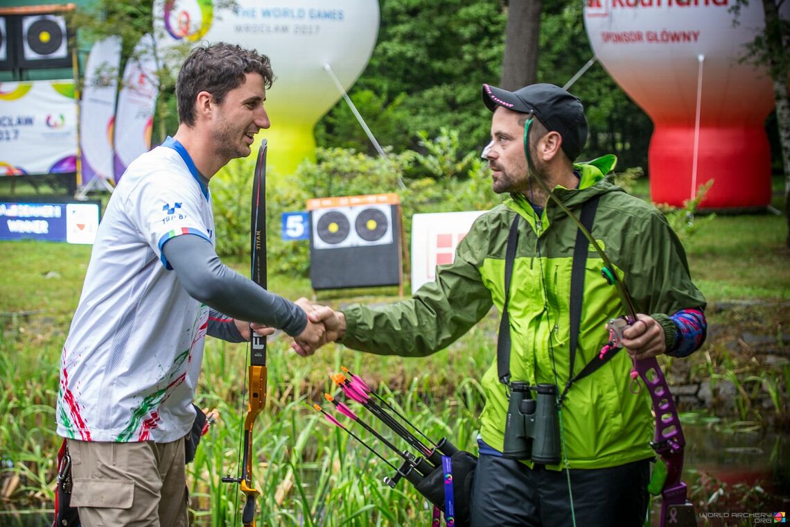 Hungary’s Istvan Kakas and John Demmer III, from the USA, defeated Erik Jonsson and Giuseppe Seimandi in the barebow men’s shoot-up eliminations to make the semifinals at the 2017 World Games in Wroclaw. Jonsson won the event in 2001 and 2005, Seimandi in 2009 and 2013.