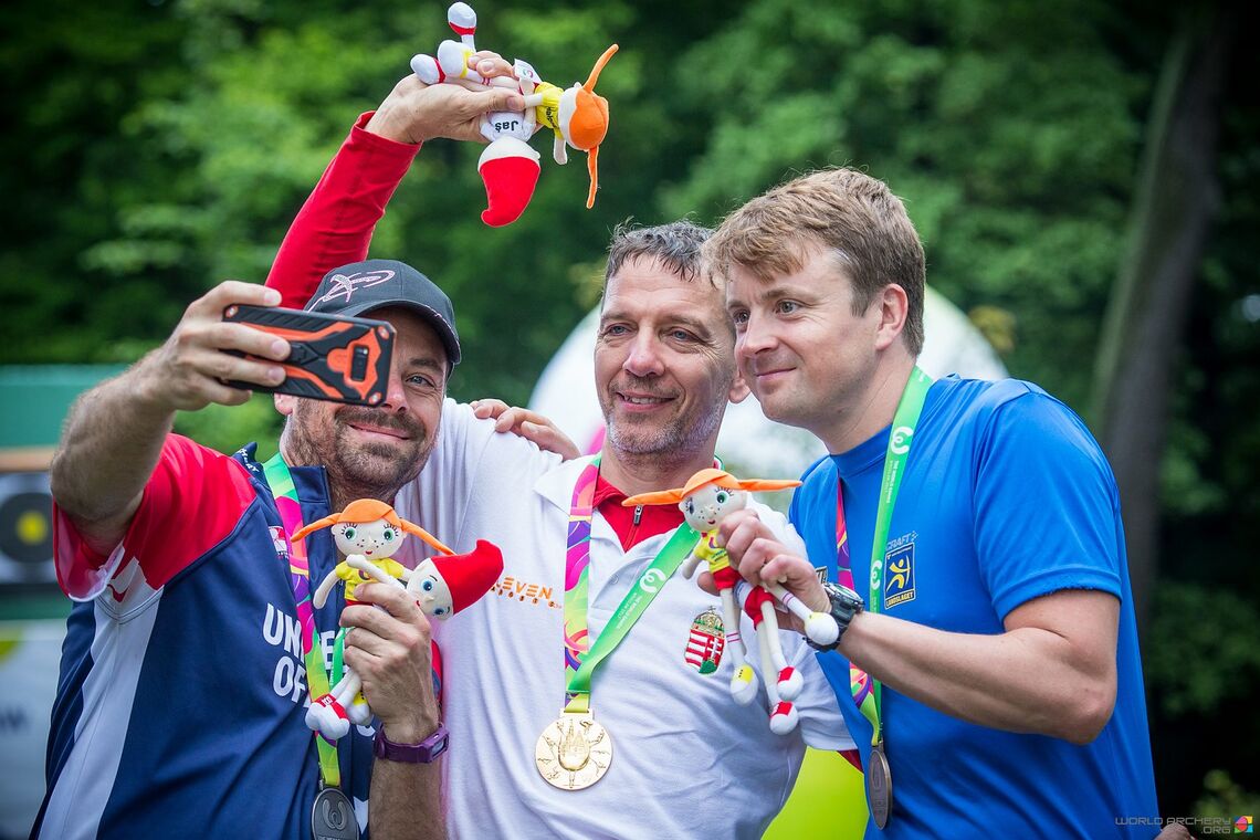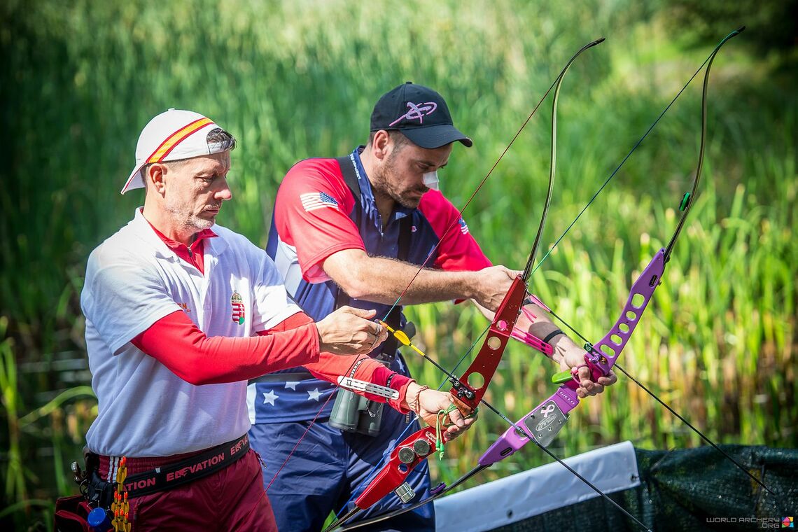 Hungary’s Istvan Kakas shot a perfect six with the last arrow of the barebow men’s final, beating John Demmer III of the USA, 54-51, and winning gold at the 2017 World Games in Wroclaw, Poland.