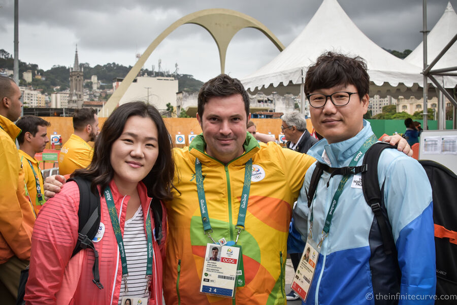 I got to interview some archery deities, Park Sung-Hyun and Park Kyung-Mo, who were there to commentate for Korean TV. Sung-Hyun was a more imposing, twitchy presence than her husband, and sat coiled like a spring on her chair.