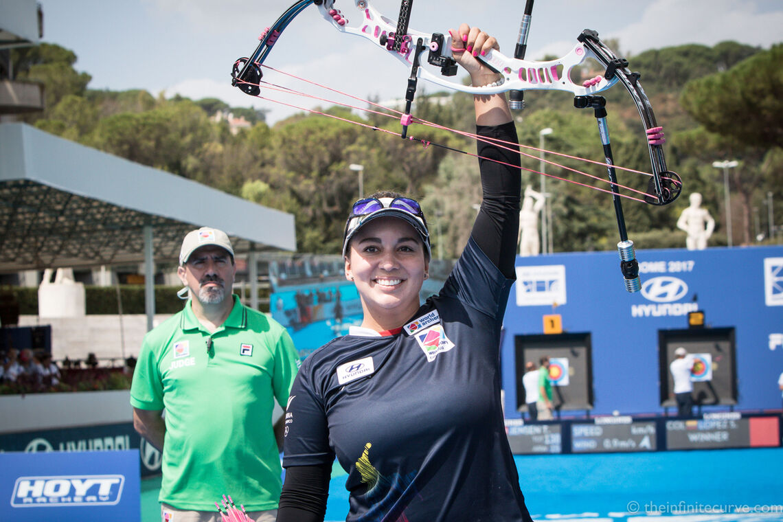 Colombian compound woman Sara Lopez beat Tanja Jensen from Denmark by seven points, 145-138, in the gold medal match at the 2017 Hyundai Archery World Cup Final in Rome, Italy to secure the champion title for the third time after winning in 2014 and 2015.