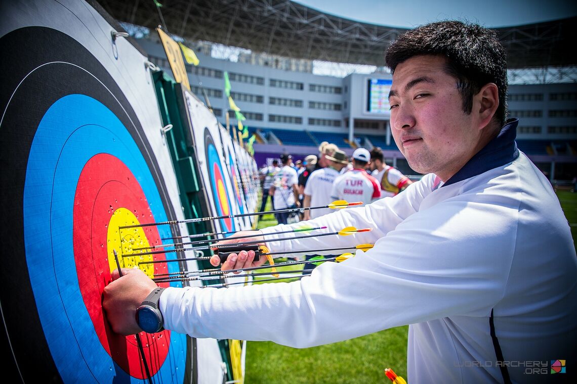 The numbers show an advantage in the Korean archer’s favour: he averaged 9.46 points per arrow last year to Ellison’s 9.37; won 81% of his matches to Ellison’s 75% – and the two time World Archery Champion faces a US opponent with nerve damage in his fingers.