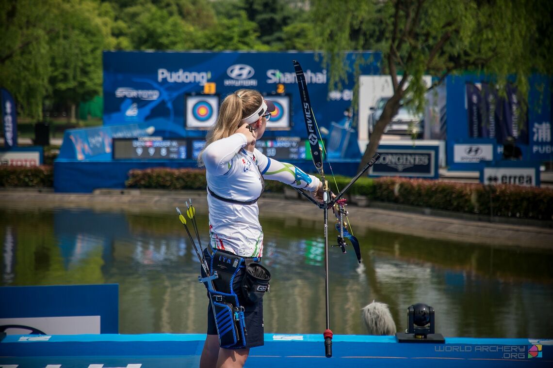 Twenty-year-old Vanessa Landi of Italy beat 2013 World Archery Champion Maja Jager in four sets, 6-2, to collect the recurve women’s bronze medal at the Shanghai stage of the 2018 Hyundai Archery World Cup circuit, the first individual international podium of her career.