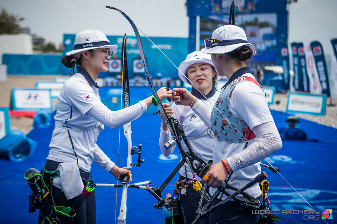 Korea unbeaten in recurve team matchplay through two stages