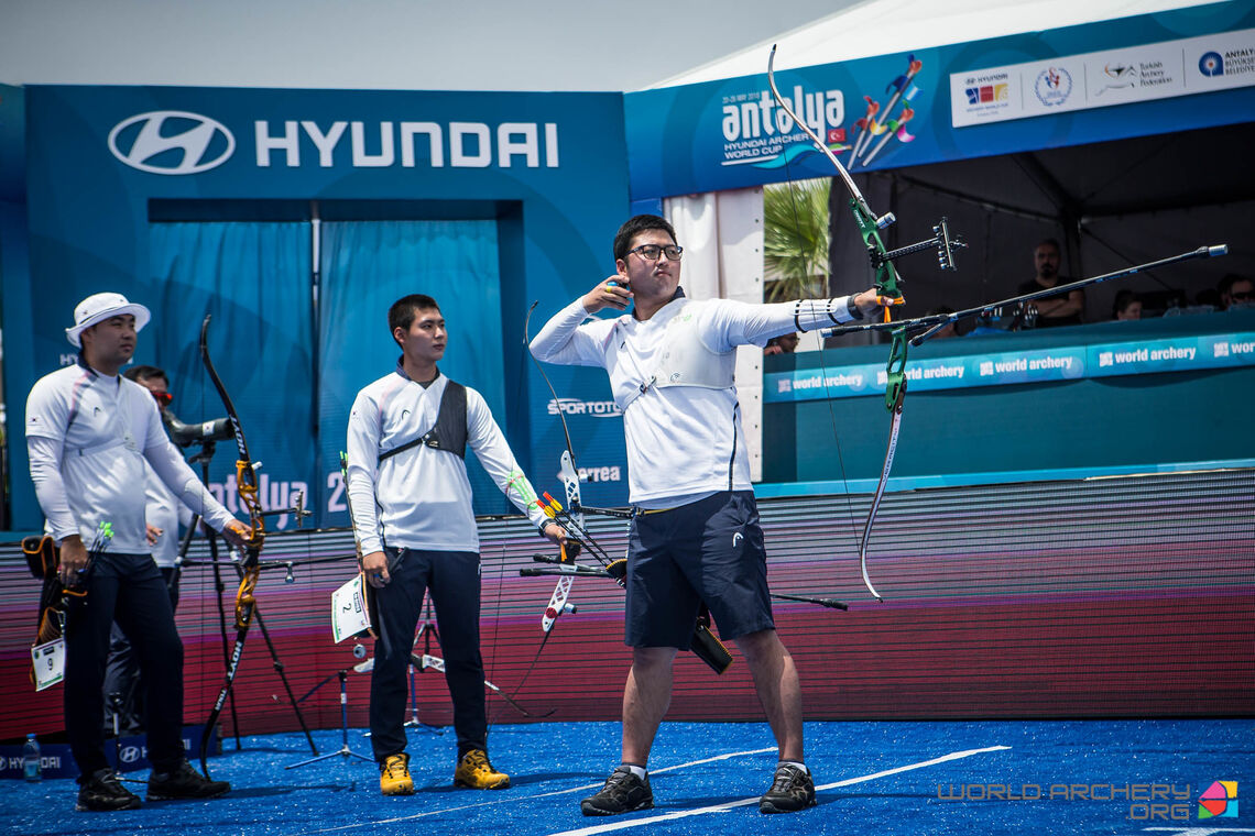 Korea’s recurve men’s and women’s teams won gold medals on the beach at the second stage of the Hyundai Archery World Cup in Antalya, Turkey to remain unbeaten through two legs of the international circuit in 2018.