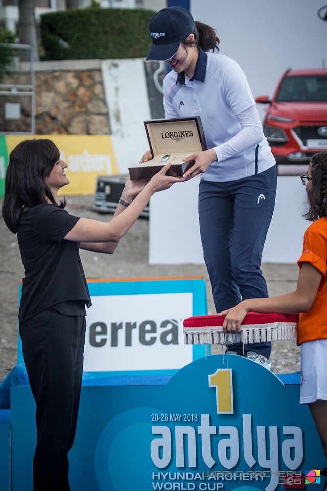 Korea’s So Chaewon was awarded the Prize for Precision at the second stage of the 2018 Hyundai Archery World Cup in Antalya, Turkey. Chaewon shot 113 total 10s through qualification and third-round-plus matchplay, the most of any of the compound women.