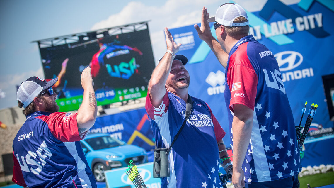 Steve Anderson, Kris Schaff and Reo Wilde beat Mexico, 231 points to 216, to secure the USA compound men’s team’s second stage victory of the 2018 Hyundai Archery World Cup season after gold in Shanghai and silver in Antalya.