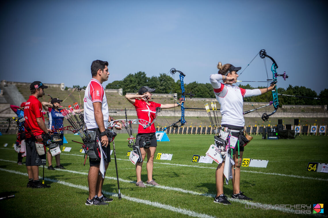 Yesim Bostan and Demir Elmaagacli tied the world record for the compound mixed team match with a perfect score – 160/8X – in their first match of the day. They then scored 158 to defeat Germany in the quarterfinals, but could not stand up to that level in the last round of the day.