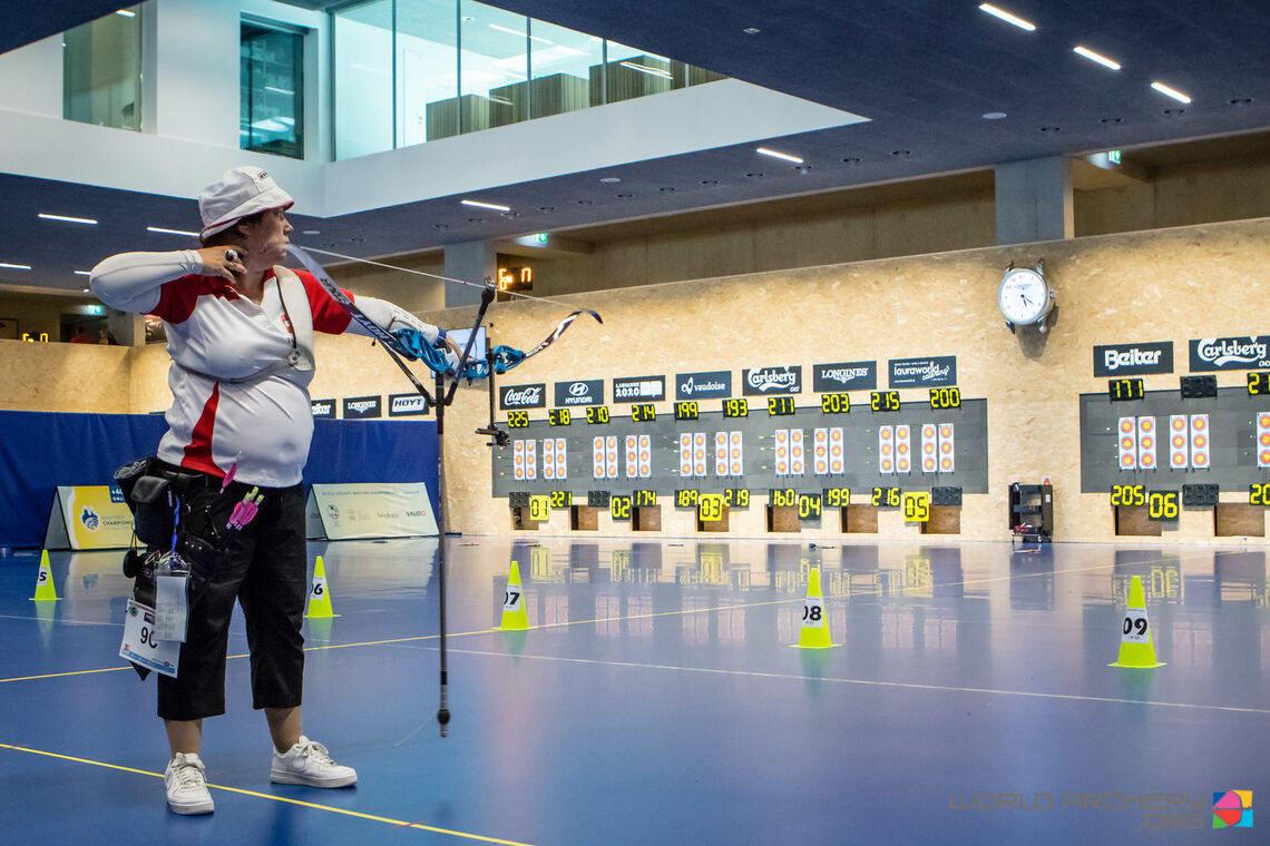 Laura Bennett Shelton was named the first gold medallist and world champion of the first 2018 World Archery Masters Championships when she took the recurve women’s 50+ indoor title, beating Swiss Olympian Nathalie Dielen by seven over the combined indoor round.
