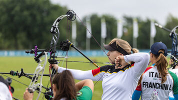 Germany’s Carolin Landesfeind took compound women’s bronze; third in the men’s event was Steve Anderson.