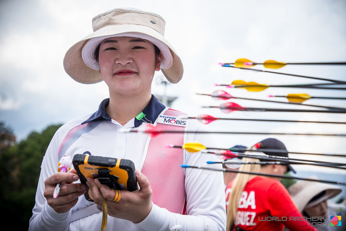She and Kim Woojin came within two points of the mixed team ranking round world record in Medellin, but the deteriorating weather scuppered any chances of that falling.