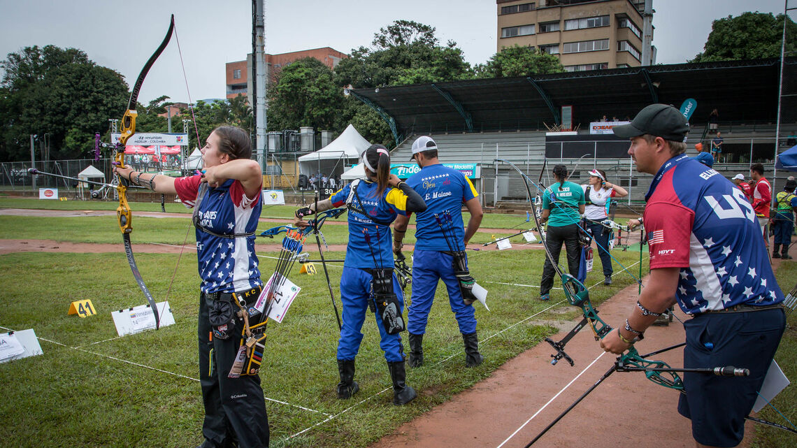 The USA will contest both mixed team titles in Medellin after recurve archers Brady Ellison and Casey Kaufhold, and compound shooters Matt Sullivan and Alexis Ruiz made it to the finals at the first stage of the 2019 Hyundai Archery World Cup.