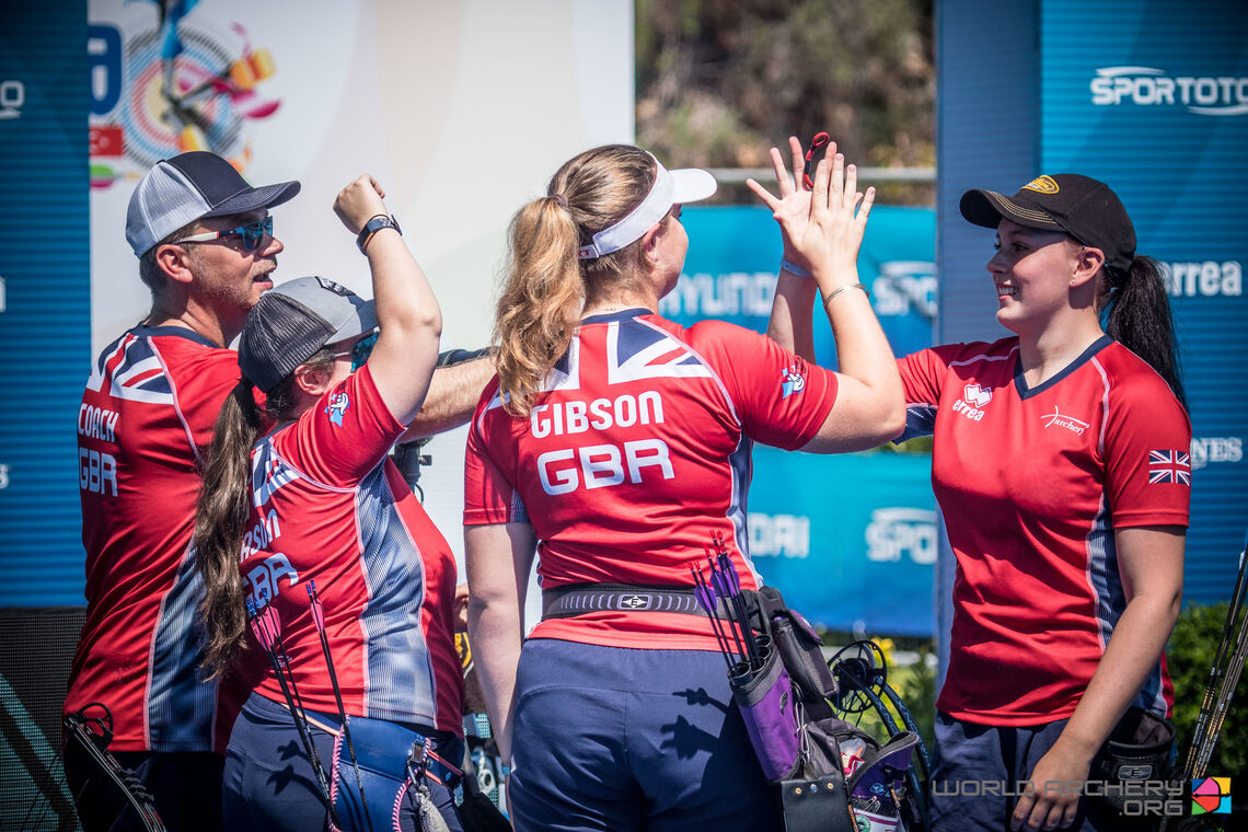Gibson, Layla Annison and Lucy Mason shot three straight ends of 58 points to recover from a seven from Mason with her first arrow.