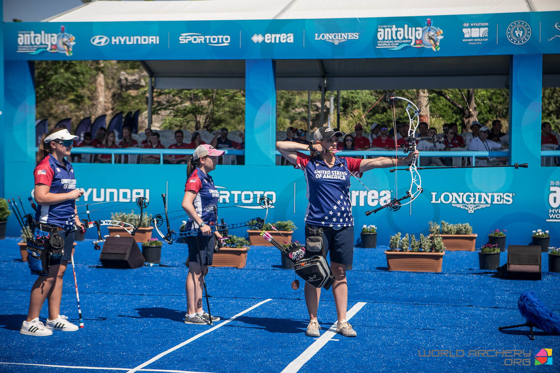 The USA compound women won team silver at the first stage in Medellin, gold in Shanghai and a second gold here in Antalya.