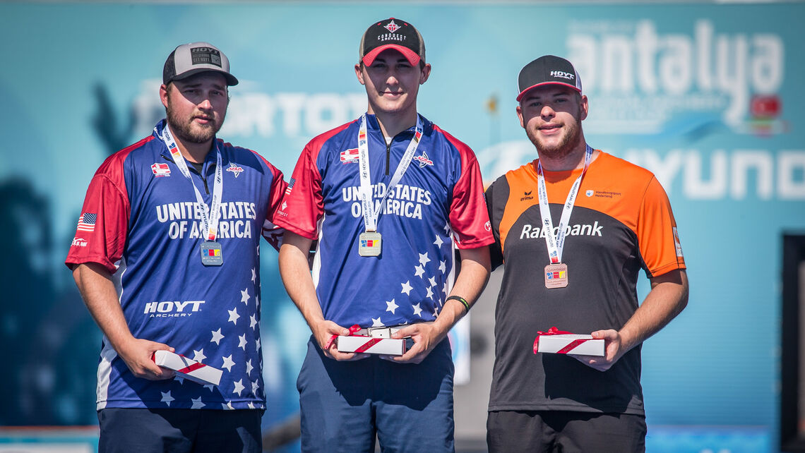 James Lutz shot a perfect 150-point match to beat USA teammate and defending Hyundai Archery World Cup Champion Kris Schaff by a point in the final of the third stage of the circuit in Antalya.