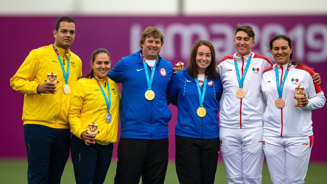 Casey Kaufhold and Brady Ellison beat Colombia in four sets, 5-1, to win the first recurve mixed team title in the history of the Pan American Games and secure a women’s quota spot for the Tokyo 2020 Olympic Games.