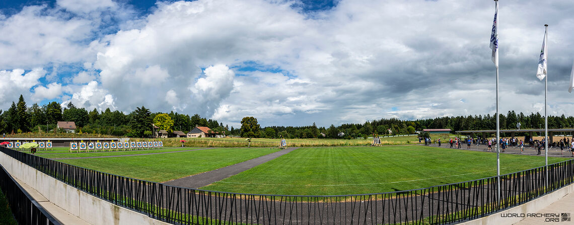 The field is split into three parts with the main two for qualification and eliminations situated about 200 metres away from the World Archery Excellence Centre on football pitches. The left side of the range contains 32 targets set at 70 metres for the majority of the 149 recurve archers competing at this stage of the tour.