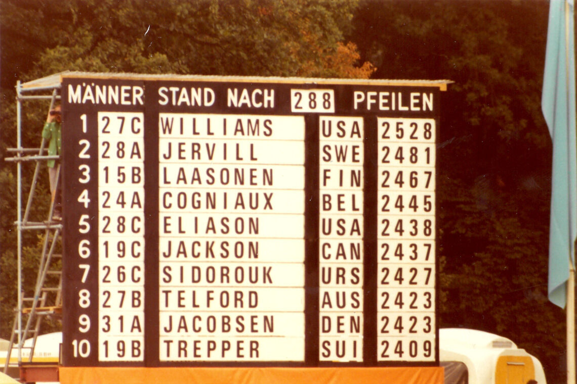 On 7 September 1972, with his mother and father sitting in the stands, Williams opened with a score of 52 out of a possible 60 points for his first six arrows at 90 metres. It put him in the lead – when he was normally a slow starter.