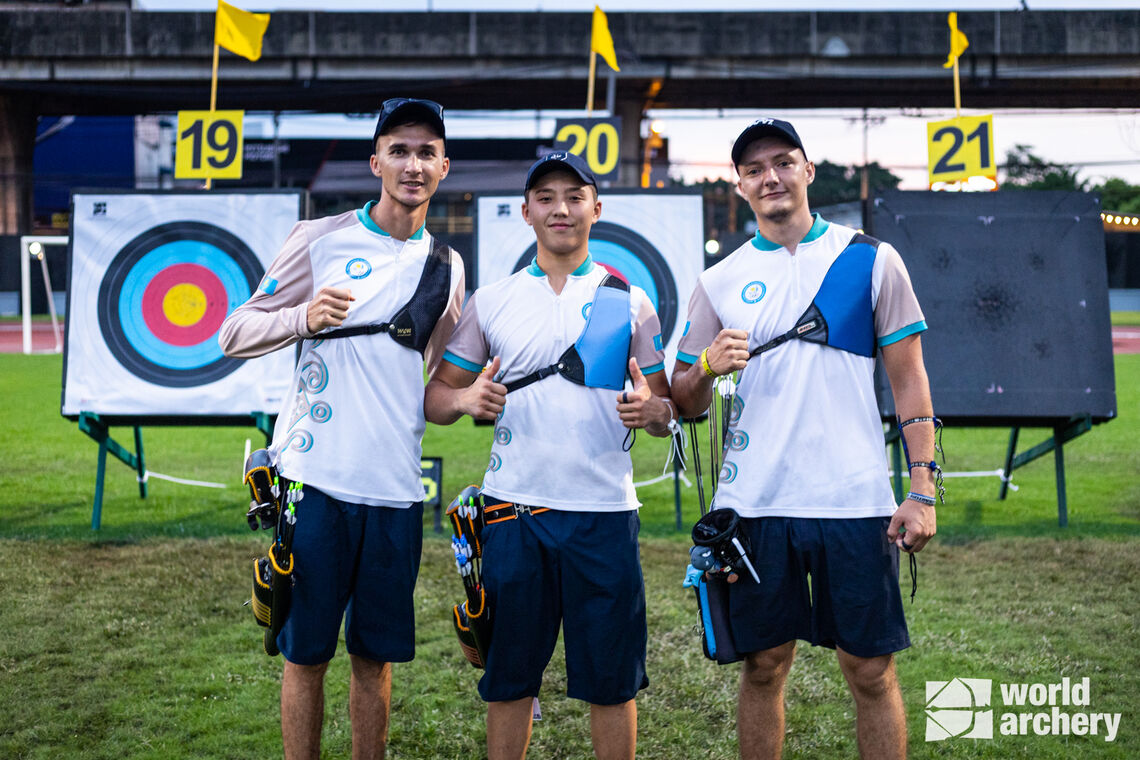 The Kazakhstan recurve men’s team of Ilfat Abdullin, Alexandr Yeremenko and Dauletkeldi Zhangbyrbay made history today at the Bangkok 2023 Asian Archery Championships by becoming the first national recurve side to take an Olympic team spot at a continental championships, after the qualifying procedure was updated in 2022.