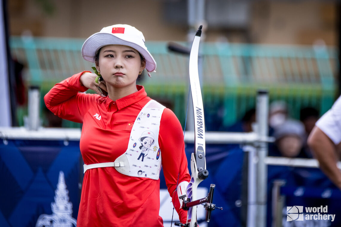 Elsewhere on the recurve field, the Korean machine held firm, winning the men’s and women’s individual, men’s and women’s team, and mixed team titles. The one small crack in the armour was China’s Li Jiaman (pictured above), who featured in two of those finals on the losing side but managed to wrestle the individual bronze medal off Kang Chae Young.