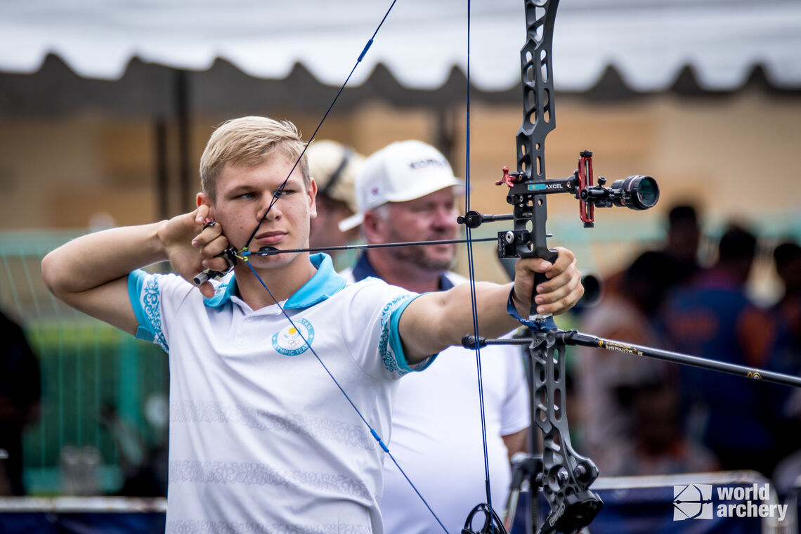 However, the compound action at this competition had definitely not gone all Korea’s way. The Korean men’s team did manage to edge out Kazakhstan by two points in their final, and a pair of archers from that match came back on for the individual final. But then the 17-year-old Andrey Tyutyun (below) held his nerve to defeat the much more experienced Kim Jongho for the individual title, 146-144, in what might have been the match of the day.