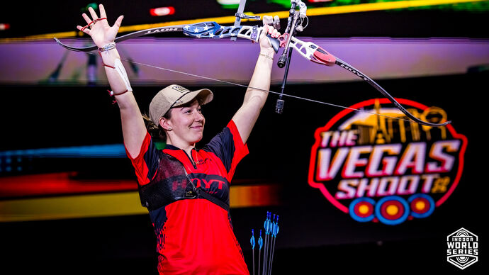 For the first time at the competition, the World Series finals were held on Sunday as part of the showcase final event, sandwiched between Vegas championship shootdowns and the main compound open shootdown, which must have forced some decisions about energy levels and bow setups for some competitors.