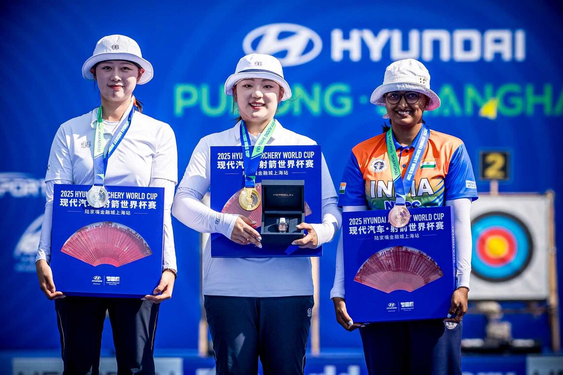 With three sets apiece in the bronze medal match, last year’s World Cup Final runner-up Kumari delivered her only perfect score of the day – three 10s – followed by a 29 to edge Kang’s 29 and 28, winning 7-3. The margins were fine, fitting of world-class archery.