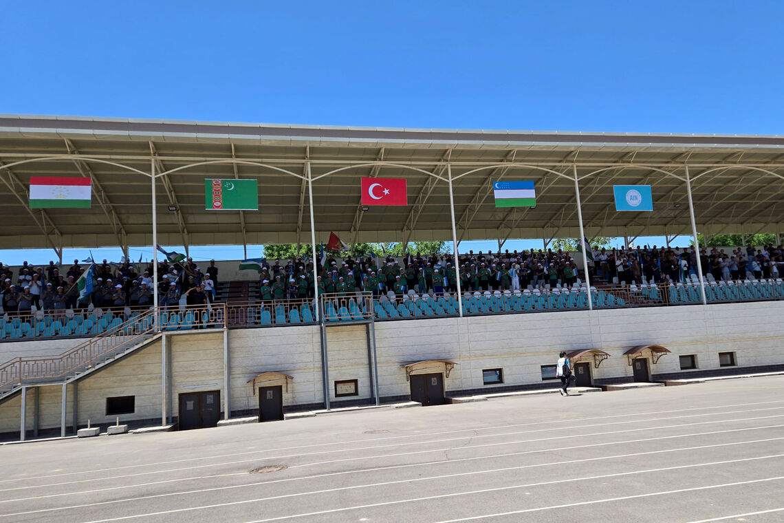 Full spectator stands at the International Alpomish Barchinoy Tournament.