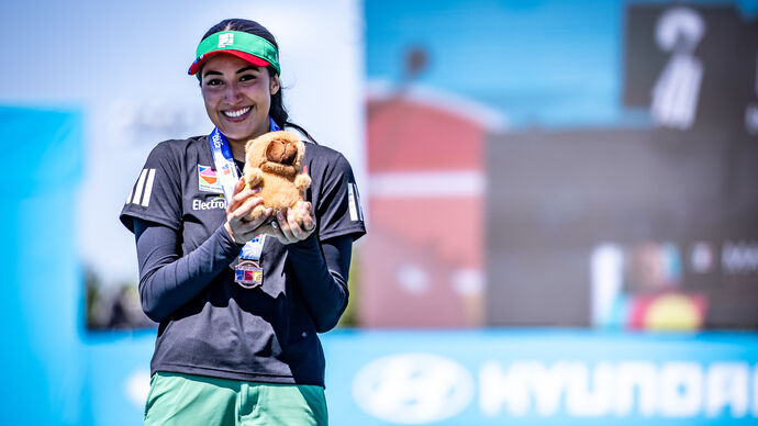 The gold medal match against Becerra, with the weather finally holding off, pushed the level even higher. Both archers opened clean until Bernal dropped a point with the final arrow of the fourth end. But Becerra faltered, delivering three nines. Bernal did enough to force a shoot-off, and then found the perfect shot that secured her the title.