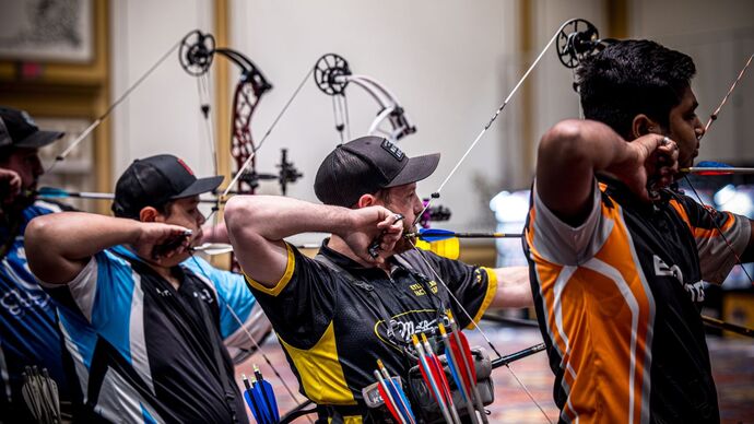 A total of 44 compound men remained clean, with one day – 30 arrows – left in qualification. The group includes several top names, among them Gwangju 2025 World Archery Champion Nicolas Girard, Mike Schloesser, Ajay Scott, Abhishek Verma and Stephan Hansen.