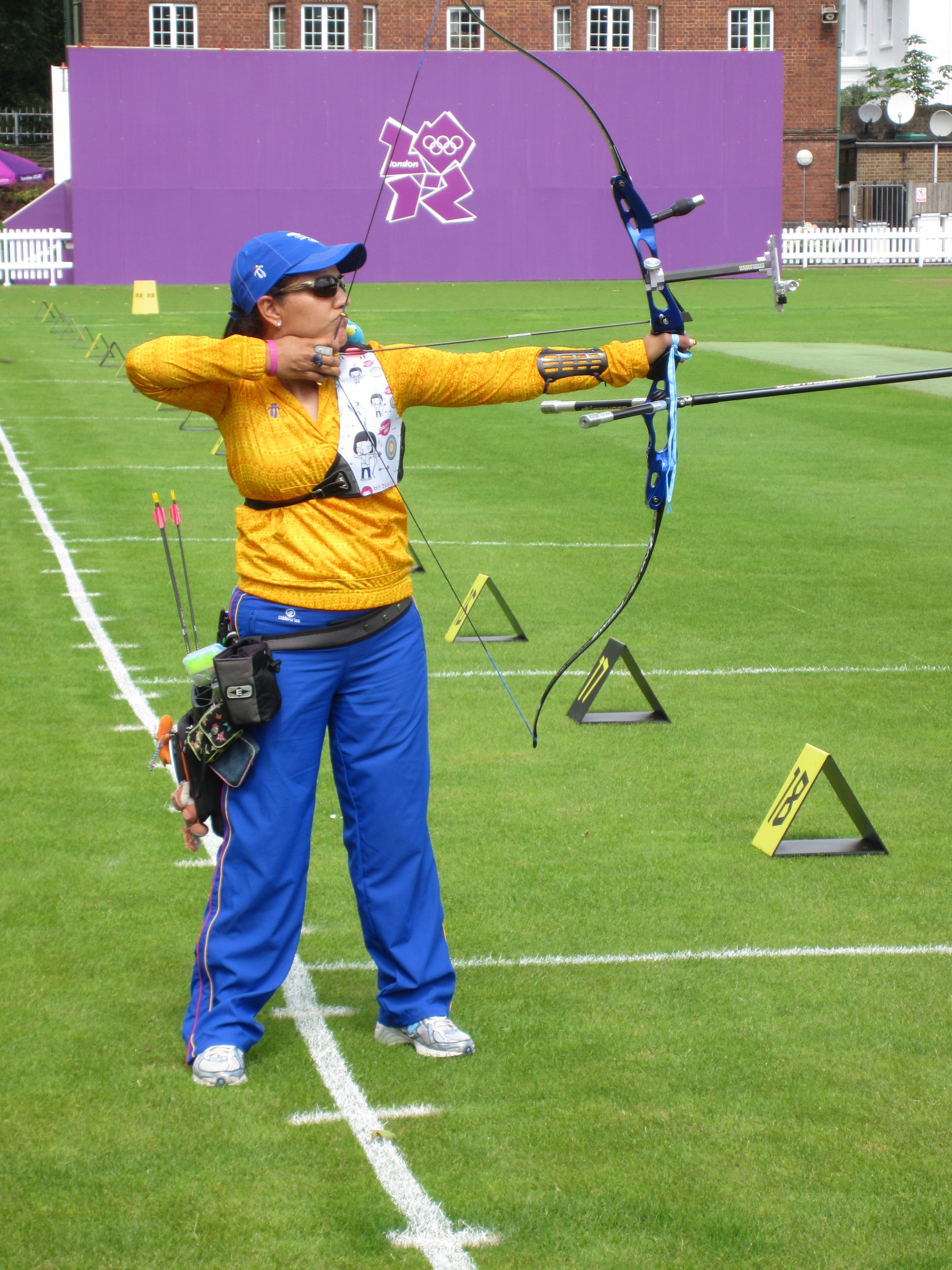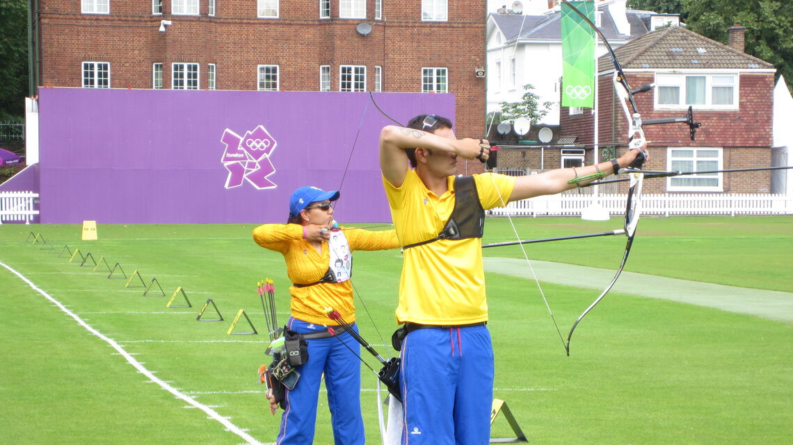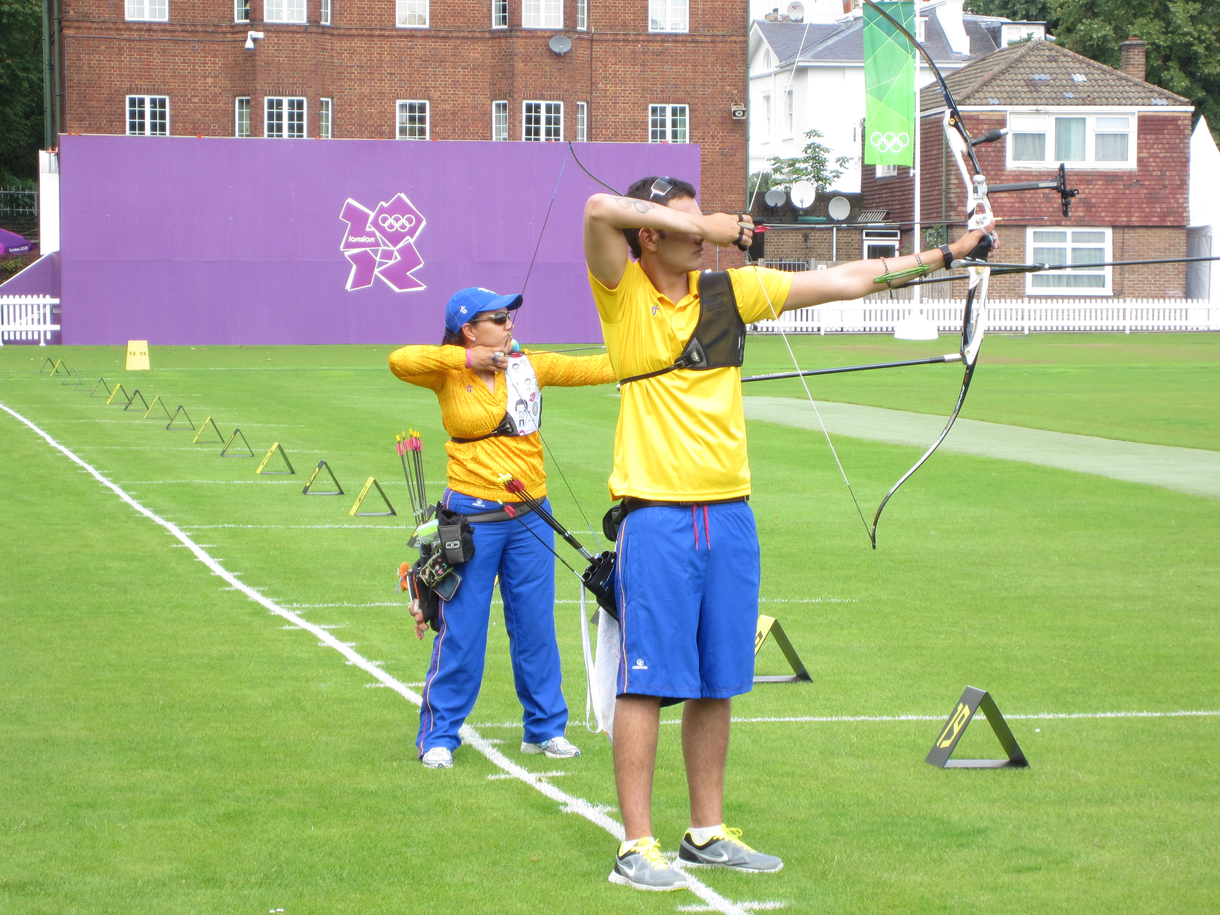 The Olympic archery competition starts in 10 days. Today two Colombian archers were the first to experience the Olympic Archery Training/Ranking Round Range at Lord’s Cricket Ground in London. It was Ana RENDON who shot the first arrow at 70m.