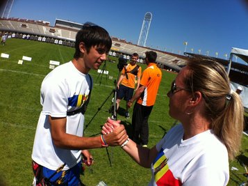 The youngest archer competing in the London Olympic Games is Dan OLARU from Moldova at 15 – he was born on 11 November 1996. Another young archer Gael PREVOST (FRA) is amongst the youngest men at 18. “I don’t feel too much pressure, because I have nothing to lose”, said the French archer. “I hope that these won’t be my last Games. I don’t see any disadvantages about being among the youngest.” Gael PREVOST and teammates Thomas FAUCHERON (22), and Romain GIROUILLE (24) make up the youngest team on the field, with an average of 21,3 years, and they are among the favourites for a medal in the competition.