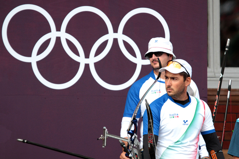 Marco GALIAZZO (ITA) and Mauro NESPOLI (ITA), two survivors from Beijing 2008, backed up FRANGILLI well and there was no sign of a repeat of four years ago when NESPOLI's final shot in the 7 cost them gold.