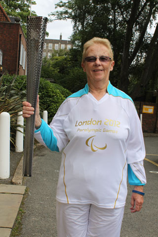 Para-archery expert Helen GEORGE (GBR) carries the Torch