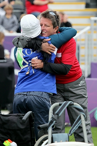 Today was the last day of quarterfinals. The recurve men and women standing categories and the compound men and women were on the field. Let’s remind ourselves of the importance of the quarterfinals: a win gives a place in the semifinal and such place provides two chances at a Paralympic medal! World Archery had the pleasure to welcome a strong Finnish delegation led by the President of the State Sauli NIINISTÖ. Here some commentaries from the field! Recurve Men Standing Eric BENNET (USA), who is shooting with one arm (and a device fixed on his shoulder to release the arrows), has been impressive until now. He started his quarterfinal match in the same fashion with 10-8-8 to take the first set. His opponent Oguzhan POLAT (TUR) raised up his game a bit in the second set with 7-9-9, but BENNET scored 9-8-9 to take a 4-0 lead. Both archers shared the third set with 26-26, BENNET led 5-1. Then POLAT kept his chance alive when he finished the fourth set with a 10! His 26 points were enough to take the two set points this time, as BENNET only scored 25. However, POLAT could not repeat this feat on the fifth set. He finished with an 8. The door was opened for BENNET who ended the match superbly with 9-10-10. Victory for the American, 7-3. The No. 2 seed Timur TUCHINOV (RUS) was the favourite against the No. 23 Roman CHAYKA (UKR). He was consistent and prevailed 6-0 (26-21, 26-20, 27-25). TUCHINOV’s teammate Mikhail OYUN also defeated a Ukrainian archer, Yuriy KOPIY, 6-2 (22-23, 28-25, 26-22, 25-20). Finally, the third Russian also made it to semifinals! Oleg SHESTAKOV defeated Zafer KORKMAZ (TUR) 6-4 ( 29-21, 23-29, 24-25, 27-24, 28-20). Recurve Women Standing The No. 8 Javzmaa BYAMBASUREN (MGL) created the first upset of the day by taking out the No. 1 seed and current world champion GAO Fangxia (CHN), 6-0 (25-24, 24-21, 24-21). The No. 12 Magali COMTE (SUI) was on the way for another upset, when she led the No. 4 seed and Paralympic champion LEE Hwa Sook (KOR) 4-0. However the Korean came back strongly in the last three sets (winning them 23-21, 30-26, 27-23) to enjoy the victory, 6-4. The No. 3 seed YAN Hulian (CHN) was taking on the home crowd favourite Sharon VENNARD (GBR) seeded No. 6. The Chinese athlete took the first set, 25-22. Both athletes started the second set with 7-9. However VENNARD finished with a 5 and YAN took a 4-0 lead in the match shooting an 8. There were some little gusts of wind and VENNARD started the third set with a 6. YAN was hardly better with a 7. Same thing with their respective second arrow, 6 and 7. VENNARD finished with an 8. YAN did not miss the opportunity to clinch a spot in the semifinal with another 8. Victory 6-0 for YAN. The last quarterfinal of the morning session was between the No. 2 seed Milena OLSZEWSKA (POL) and Irina BATOROVA (RUS) seeded No. 10. It was the lower seed, BATOROVA, who started better in this match taking a 4-0 lead. OLSZEWSKA cut her deficit by half in the third set, shooting 8-9-9. Then, the Polish archer followed up with 9-10-8 and tied the match at 4-4! OLSZEWSKA continued in good form when she opened the fifth set with a 10! On her side, BATOROVA lost pretty much all her chances when she scored a 3. OLSZEWSKA finished with 9-10, clinching the match 6-4. It was another come-back victory during the morning session! Compound Men Open In the afternoon, yet another extraordinary match took place! The archer who shoots with his feet, and with no help, the No. 1 seed from the qualifications in probably the most competitive category since five former world champions are in it(!), Matt STUTZMAN (USA) shot against his teammate Dugie DENTON! Both archers shot 28 points in the first set. Then STUTZMAN shot 10-9-10 and DENTON 10-10-9 in the second set. Scored remained tied, 2-2! STUTZMAN started the third with a 9*, meaning close to the 10 line. DENTON shot a 10. STUTZMAN had another 9. DENTON a 10. STUTZMAN, 10! DENTON a third 10! Despite that STUTZMAN first arrow was indeed a 10 (it caught the line), DENTON’s perfect set gave him the lead, 4-2. STUTZMAN started the fourth set with a 10 and followed up with two 9s. That was enough to tie the match at 4-4, as DENTON scored 9-9-9. STUTZMAN shot first in the last set and he had to reset his mechanical release during his shot! With three seconds left on the clock, he scored a 9. DENTON had a 10. Matt had another 9*. Dugie a 10. STUTZMAN needed a 10 to put pressure on his opponent and got it! DENTON finished with an…8! Now the 9* had all its importance. Finally, it was judged as a 10 (it touched the line). STUTZMAN had a done it again! After coming back from a 0-4 deficit in his previous match (when he struggled with a broken release at warm-up and wet feet on the final field…), STUTZMAN had another come-back victory. Standing ovation!!!!! It was also a high level match between the 1998 (!) world champion Alberto SIMONELLI and Guillermo RODRIGUEZ GONZALEZ (ESP). The athletes were equal in the first three sets: 28-28, 29-29, 28-28. Then SIMONELLI went out of the “yellow” for the first time in the fourth set and he lost it 26-28. RODRIGUEZ took the lead, 5-3. The silver medallist in Beijing 2008 (and winner of numerous other world medals) SIMONELLI started the last set with a 10. RODRIGUEZ had a 10. Alberto with a 10. Guillermo with a 10. SIMONELLI finished with a 9. RODRIGUEZ needed just another arrow in the yellow to win it (which he had not missed for the entire match). He did it (a 9) to upset SIMONELLI and take a spot in the semifinals! The No. 3 seed Dogan HANCI (TUR) and the No. 6 Peter KASCAK (SVK) traded the two first sets. Then KASCAK shot a 7 to start the third set and HANCI took the advantage, 4-2. The athletes were tied in the fourth set. Finally, HANCI finished stronger in the last set with 9-9-10 to clinch the match 7-3! A strong Finnish delegation, including the President, Sauli NIINISTÖ supported Peter FORSBERG to victory in the last match of the day! The Finnish 