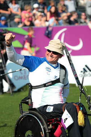 For Oscar De PELLEGRIN, London is his sixth and final Paralympic Games. In his first set of the gold medal match he shot a perfect 30. Although Malaysia’s Hasilin SANAWI opened with two 10s, his third shot was a 7, giving DE PELLEGRIN the set. SANAWI went 4-0 down before unleashing some great shooting to bring the match to an exciting 4-4 tie. The athletes then matched each other shot-for-shot to score 28 each, resulting in a one-arrow shoot-off for paralympic gold. DE PELLEGRIN shot first and got a nine, leaving SANAWI needing to shoot a perfect 10 to win. He shot and hit the eight, handing DE PELLEGRIN the gold in his final competition before retirement.