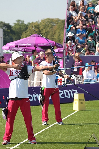 Both Oleg SHESTAKOV and Timur TUCHINOV (photo) were in great form and exchanged sets in the beginning, neither athlete wishing to give up on his gold medal chance. It was 5-3 in favour of TUCHINOV and still all to play for when an uncharacteristically poor shot from SHESTAKOV failed to hit the target and left TUCHINOV to shoot his last arrow in the 10 to take the title and the gold in style.