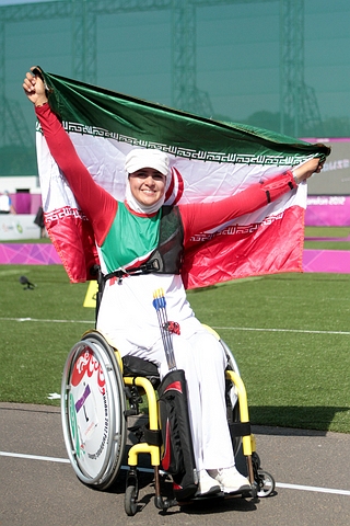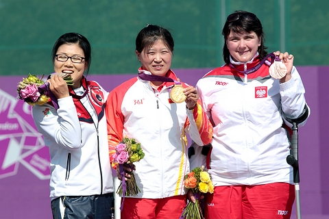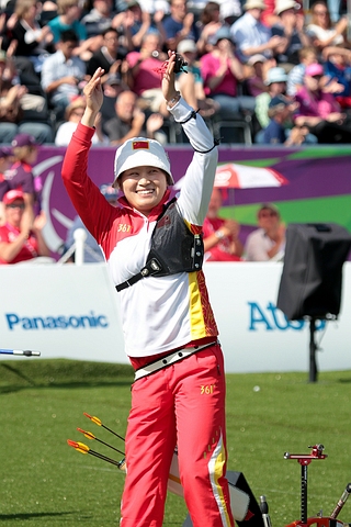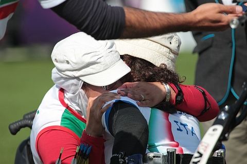 After shooting a Paralympic record in the qualification round, Zhara NEMATI (IRI) was supreme in all her matches to take the gold medal in the Recurve Women W1/W2! In the standing category, YAN Huilian brought the first archery gold to China. The women shot their individual medal matches at the archery competition of the London 2012 Paralympic Games today! The W1/W2 and Standing categories were played in the morning. The athletes shot their semifinals and then either the bronze or gold medal matches. Every individual archery match at the London 2012 Paralympic Games is the best of 5 sets of 3 arrows. There are 2 points per set to be earned. The first archer to 6 six set points wins the match! If the regulation number of sets (5) ends at 5-5 set points, there is a one-arrow only shoot-off, closest to centre wins! Here some commentaries from the field! Recurve Women W1/W2 Zahra NEMATI (IRI) started the morning sessions with another dominant performance. She is the No. 1 seed from the qualification and she beat the defending Paralympic champion Gizem GIRISMEN from Turkey in the quarterfinals. Today, NEMATI beat Veronica FLORENO (ITA) in straight set 6-0 (26-21, 23-19, 27-24). The second Italian was therefore quickly on the field for the second final. The No. 2 seed Elisabetta MIJNO (ITA) met the No. 11 seed LI Jinzhi (CHN). The Italian was consistent but not great in the first three sets with 23, 23 and 23. Her opponent shot 24, 13 and 26, hence LI led 4-2. Then MIJNO (ITA) edged up her game with 9-10-10 in the fourth set and tied the match at 4-4. MINJO started the fifth set with a 9. LI replied with a 9. Elisabetta scored another 9. LI as well! The No. 2 seed MINJO finished the match with a 10! That was too much for the No. 11 seed LI who finished with a 6. MINJO was through to the final and a clash against the No. 1 seed NEMATI! The No. 11 and 12 seeds, respectively LI and FLORENO, made their way to this bronze medal match after six days of intense archery! The Italian started with 8-7-7 but the Chinese scored 8-8-9 to take an early lead. FLORENO did not help her cause when she began the second set with a 6. She followed up with 9-9 to reach 24 points, but LI had 8-9 and an 8 (just inside) to get to 25. The Chinese led 4-0. FLORENO found some rhythm scoring another 9 to start the third set. LI had a very long hold for her first arrow and it did not help. She scored a 1. FLORENO finished with 9-7. LI did OK with 8-9, but the Italian came back at 2-4! LI ran into more troubles in the fourth set with 6-3-8. FLORENO was not perfect either with 9-4-9 but that was enough to tie the match at 4-4! It was going to the decisive set! LI had to start the fifth set. She had an 8* (meaning it could turn into a 9). FLORENO shot an 8. LI had a 7. FLORENO seemed to take the lead with an 8. LI finished with a 9. FLORENO needed pretty much a 10 to ensure victory. She scored a 6 and it was defeated. LI won the bronze medal 6-4 in set points. The No. 1 seed NEMATI is the world record and Paralympic record holder. She shot magnificently during the qualifications despite difficult weather conditions to start the competition and has been strong in every match. The No. 2 seed MIJNO had come along very nicely since she had to win a play-off at the 2011 world championships to get a spot in these Paralympic Games! Both archers shot 25 points in the first set. Then both archers started the second set with 9-9. MIJNO finished it with an 8. NEMATI launched a 10 to take a 3-1 lead in the match. MIJNO started the third set with a 10! She followed up with 8-9. NEMATI began with a 9 but continued with 10-9. She led 5-1. MIJNO definitely tried to put pressure on in the fourth set and started again with a 10. NEMATI had an 8. MIJNO scored another 10, but it was matched by NEMATI. The Italian finished with a 9 and the Iranian a 10. MIJNO took this set with the score of 29-28 (!) and came back at 3-5. Since she kept trailing, MIJNO opened the fifth set. She shot a 7. NEMATI had a 9. MIJNO scored a 9. NEMATI a 10. MIJNO could not put much pressure with her last arrow, an 8. NEMATI scored a 9 and became the new the Paralympic Champion! Reportedly the first Paralympics title ever for Iranian woman! Recurve Women Standing The No. 4 seed, defending Paralympic champion and two times individual world champion in 2001 and 2005, LEE Hwa Sook (KOR) shot against the No. 8 seed Javzmaa BYAMBASUREN (MGL) in the first semifinal. BYAMBASUREN took out the No. 1 seed GAO Fangxia from China 6-0 in the quarterfinals! LEE was using a lot of the clock (20 seconds) to release her arrows but she was quite effective in the first two sets (27-23, 26-26). She led 3-1 in set points. Then LEE shot a “Miss” in the third set and BYAMBASUREN took the opportunity to come back at 3-3. Both athletes started the fourth set with 9-9, but BYAMBASUREN finished it with a 2. That opened the door for LEE who won this set with a 6. LEE led again, 5-3. The Mongolian athlete had to put pressure on the fifth set to tie the match. However she started it with 7-7. LEE had 7 and a 9, at the very last second. BYAMBASUREN shot a last 9, very close to the 10-ring. LEE scored a last 9 to book herself a place in the final! The No. 3 seed YAN Huilian (CHN) played the No. 2 seed Milena OLSZEWSKA (POL) in the second semifinal. YAN started with 25 and 25, while OLSZEWSKA had 26 and 21. The match was tied at 2-2. YAN raised up her game in the third set to win it 27-24. OLSZEWSKA could not do any better in the fourth set starting with a 4 and a 6. A last 10 was not enough for her. YAN scored 8-7-9 to take the match! The No. 8 seed BYAMBASUREN took on the No. 2 seed OLSZEWSKA for the bronze medal. The Mongolian had the better start (23-20), but she scored a 4 (between 10 and 9) in the second set. The Polish athlete took the opportunity to come back at 2-2 in set points. OLSZEWSKA shot first in the third set and scored a 9. BYAMBASUREN had a 7. Then both athletes had a 6. There are